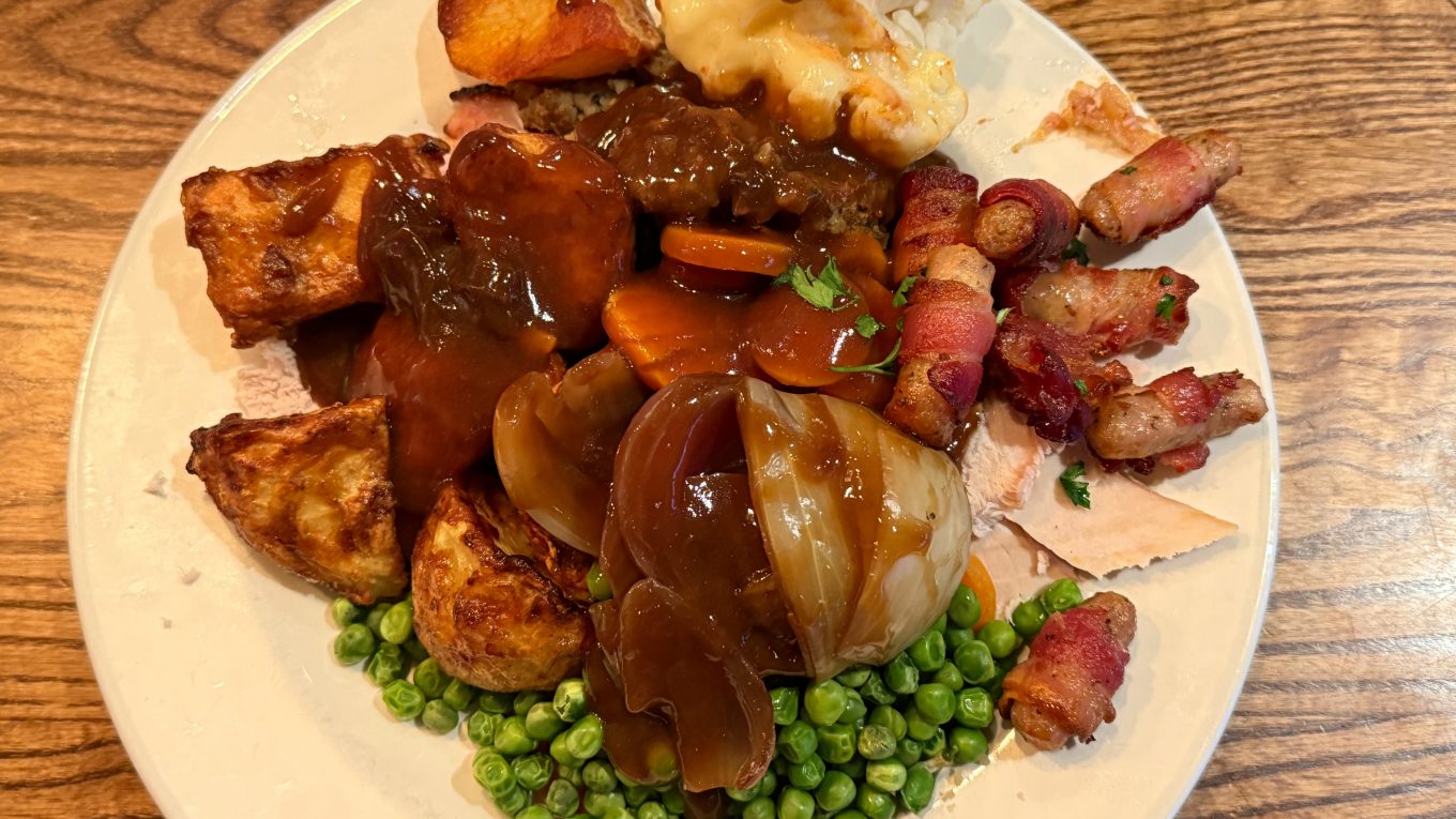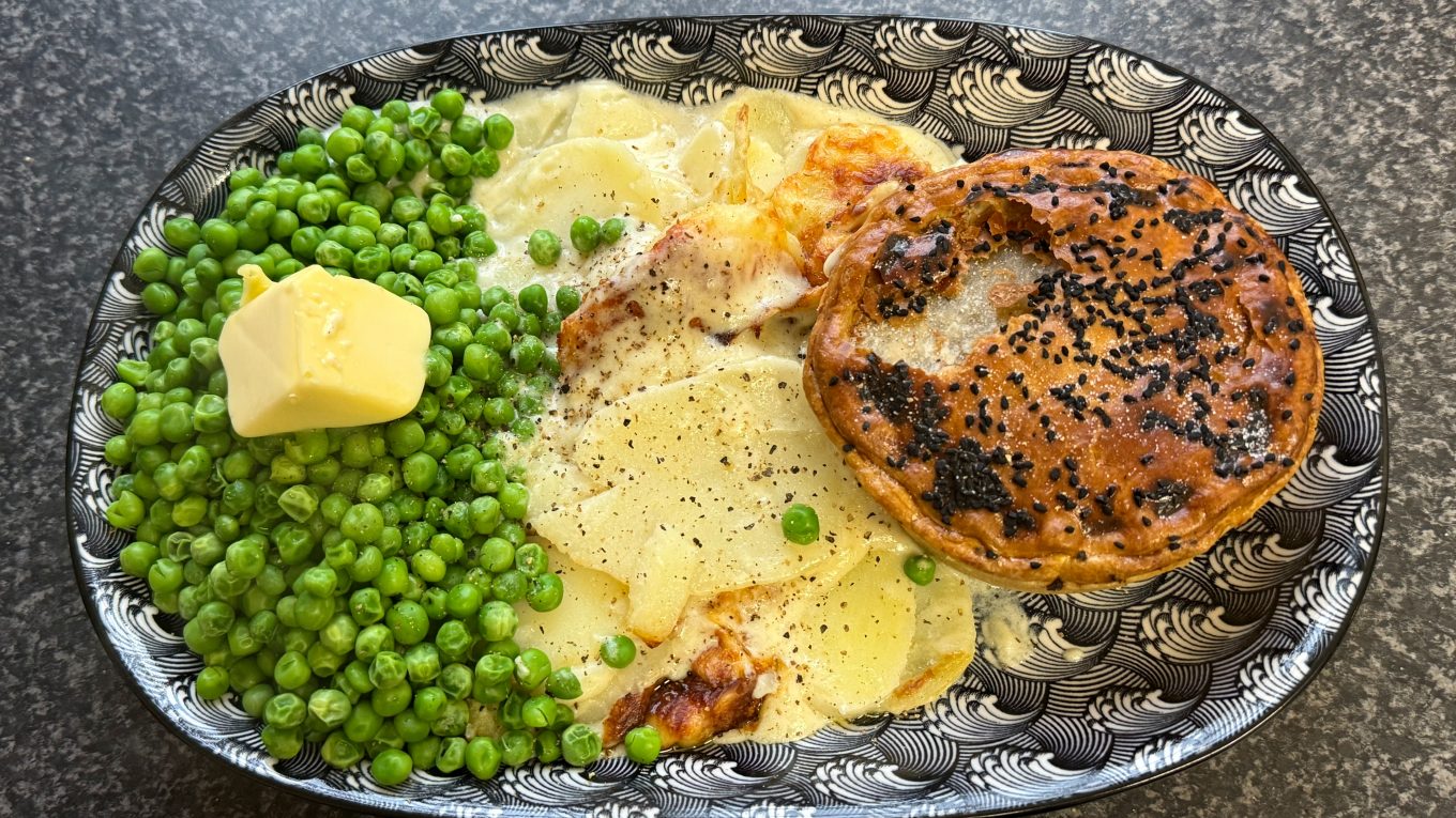 STEAK PIE, POTATO DAUPHINOISE, PEAS